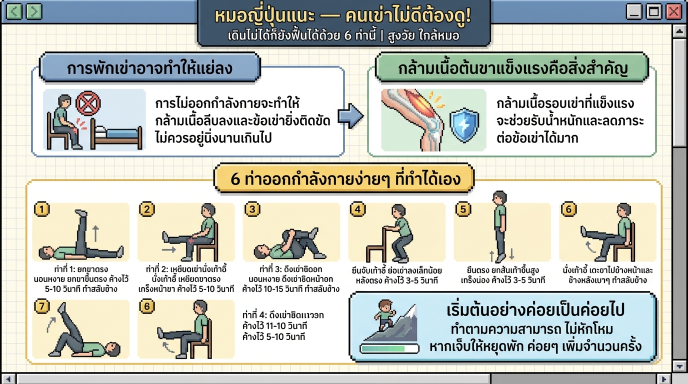 หมอญี่ปุ่นแนะ — คนเข่าไม่ดีต้องดู! เดินไม่ได้ก็ยังฟื้นได้ด้วย 6 ท่านี้ | สูงวัย ใกล้หมอ