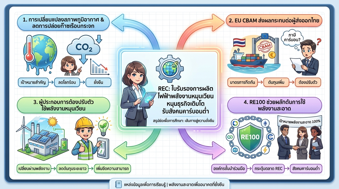 REC เป็นส่วนหนึ่งในการขับเคลื่อนการเปลี่ยนผ่านสู่พลังงานสะอาด ซึ่งเป็นเป้าหมายสำคัญของประเทศและทั่วโลก