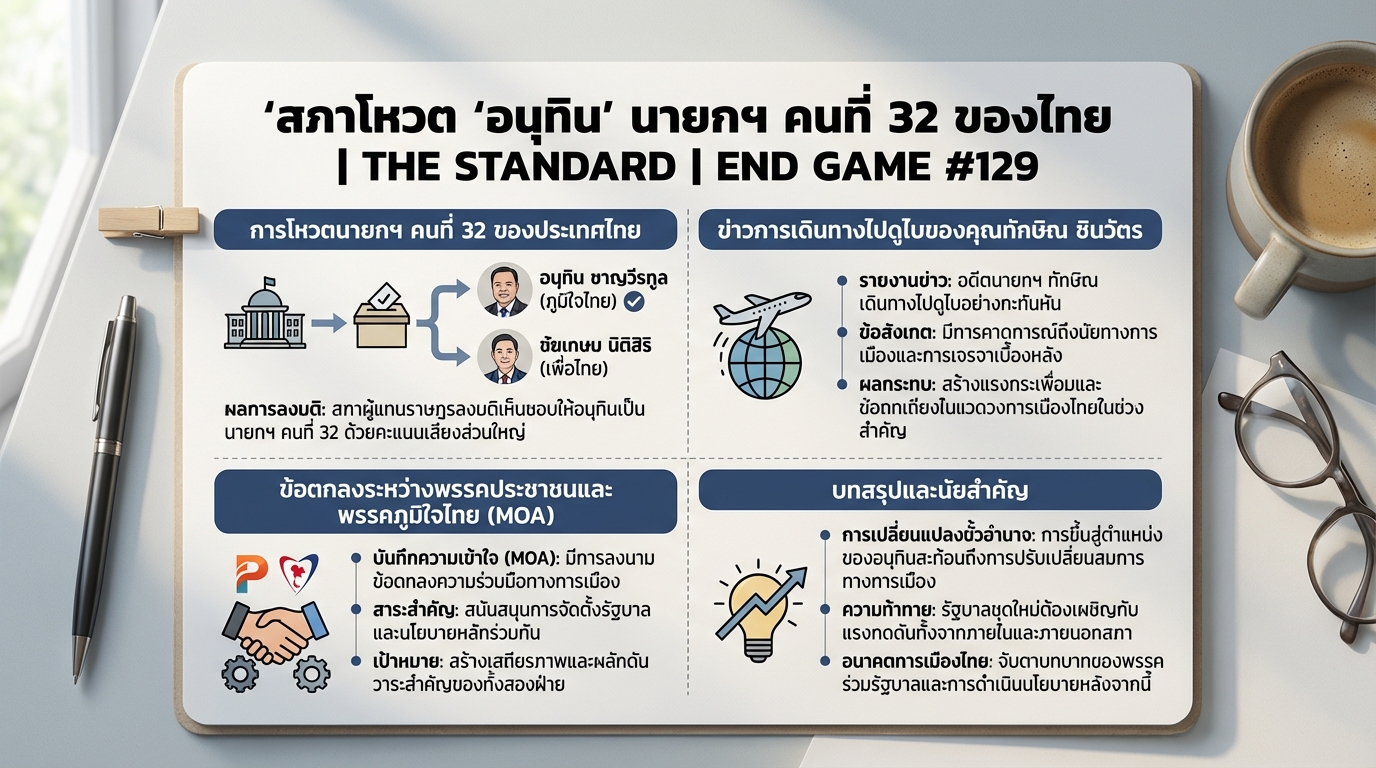 สภาโหวต ‘อนุทิน’ นายกฯ คนที่ 32 ของไทย | THE STANDARD | END GAME #129