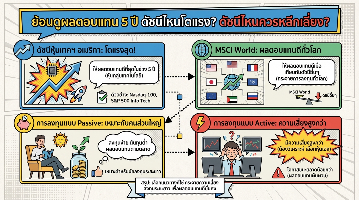 ย้อนดูผลตอบแทน 5 ปี ดัชนีไหนโตแรง? ดัชนีไหนควรหลีกเลี่ยง?